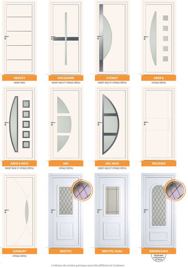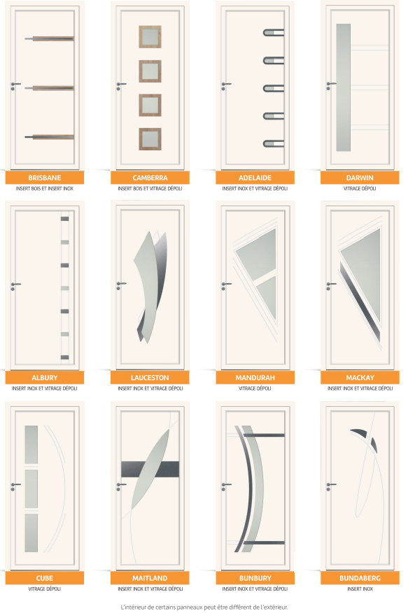 - Cette gamme reçoit un panneau standard thermoformé, composé d'une âme centrale en contreplaquée de 10 mm avec de chaque côté un polystyrène de 5 mm, recouvert d'une feuille PVC de 2 mm.